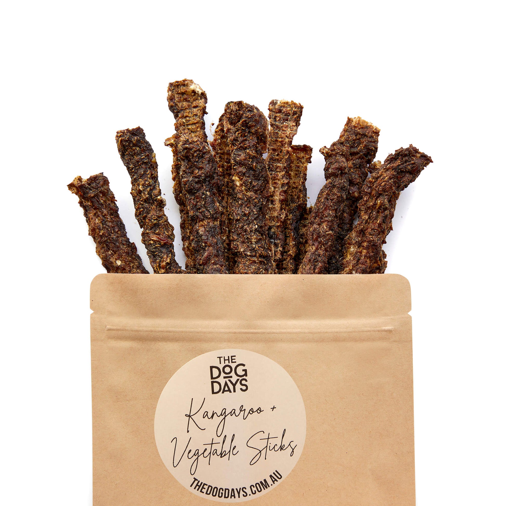 Our Kangaroo + Vegetable Bites and Sticks are a delicious and crunchy bite sized treat. Crafted with care from sustainably sourced, lean kangaroo mince, blended with a nutritious mix of carrots, green peas and broccoli. These treats are completely free from additives, preservatives, salt or fillers. Each bite sized chunk offers a premium and vitamin rich reward the aligns with your commitment to quality.