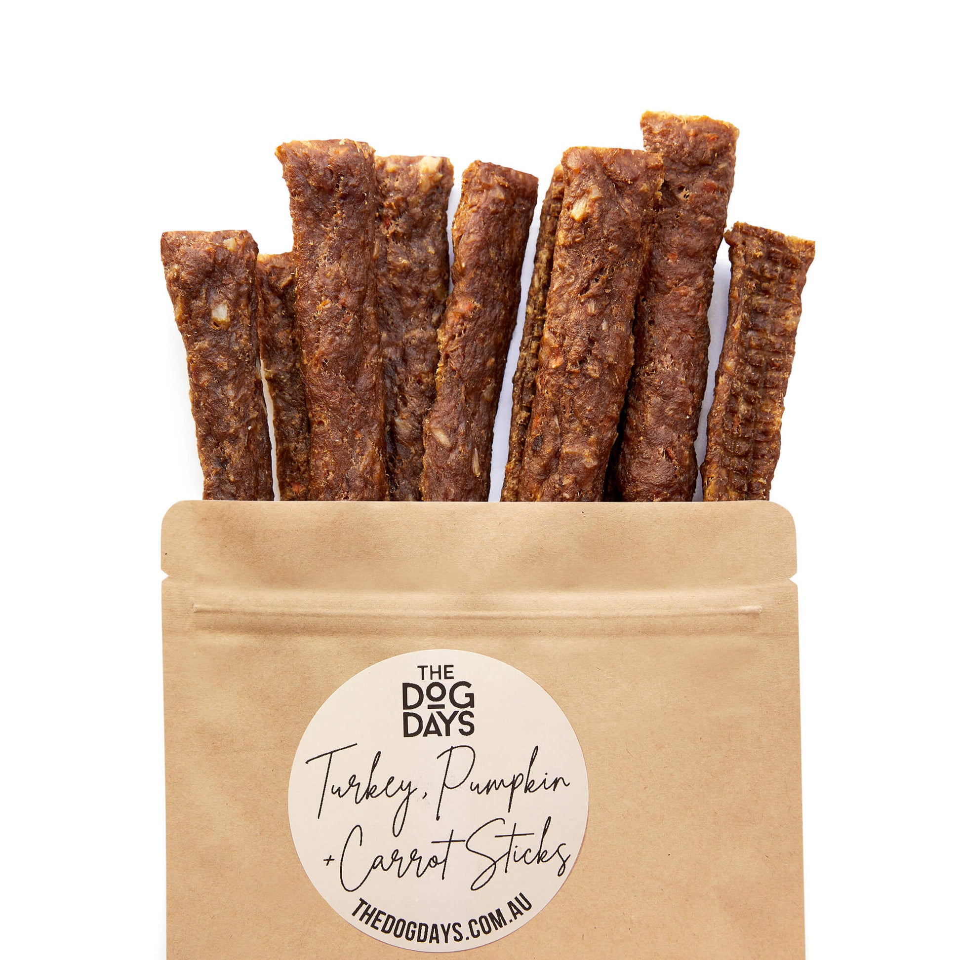 Our turkey meat with pumpkin + carrot are thoughtfully crafted with finely crushed turkey, including bone for added calcium benefits, and nutrient-rich pumpkin and carrot. Perfectly suited for pets with sensitive stomachs, these bites offer a gentle yet flavourful snacking experience.